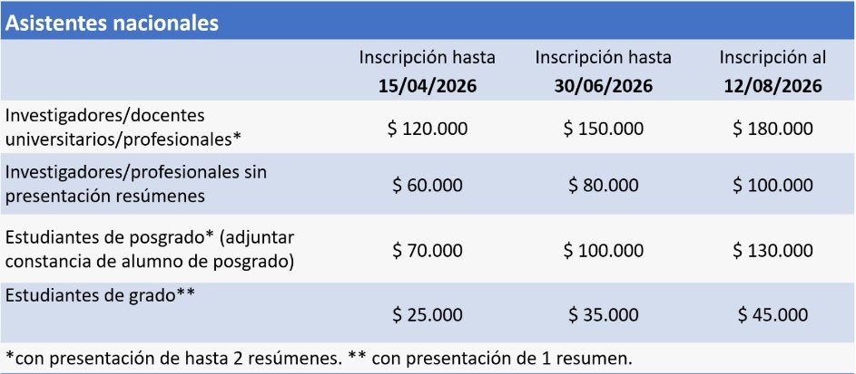IMPORTANTE: Para los inscriptos que quieren presentar más de 2 resúmenes (o más de un resumen en caso de estudiantes de grado), deben abonar un adicional de $20.000 o U$D 15 por resumen extra.