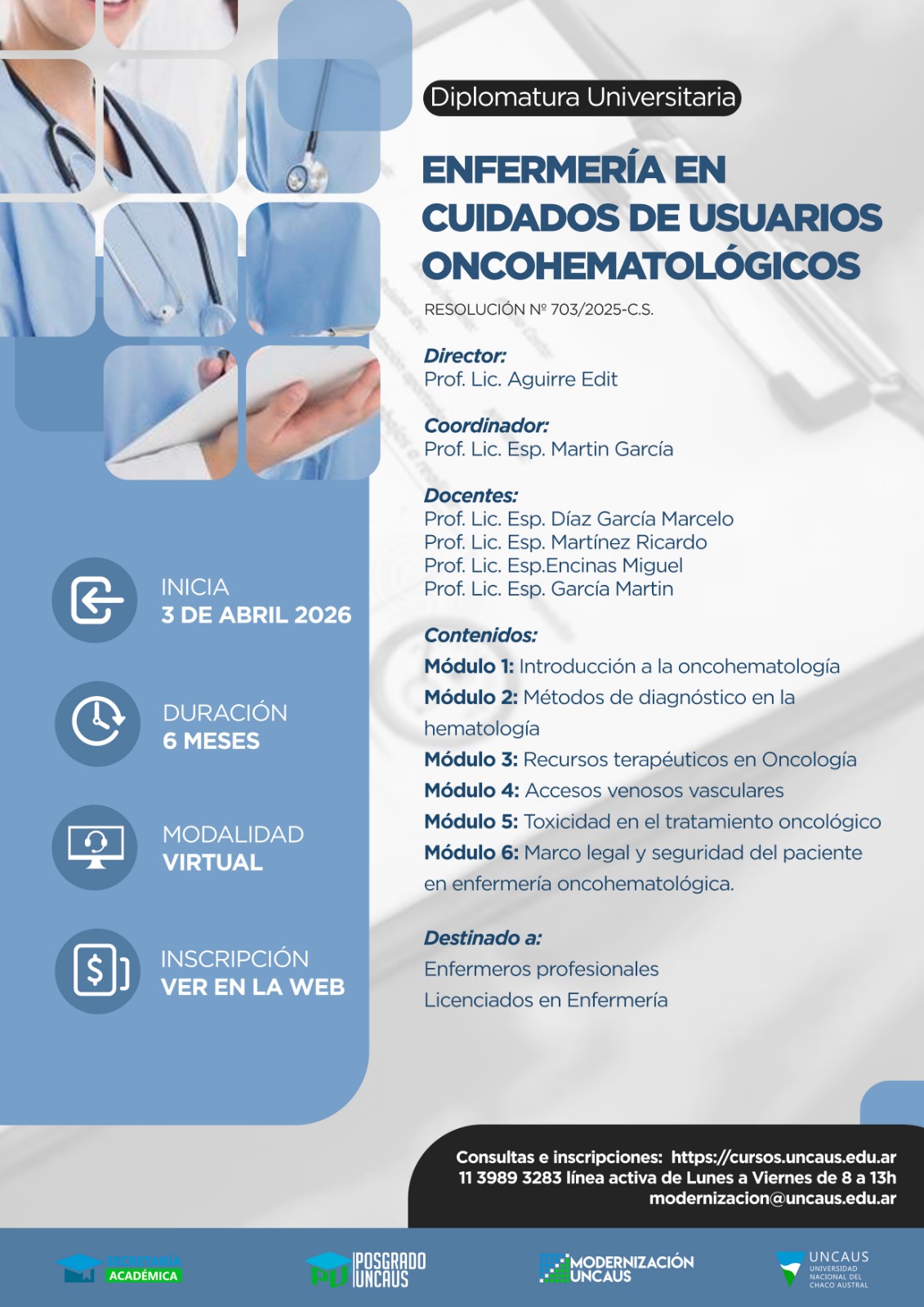 La formación de Diplomatura universitaria en Enfermería en Cuidados de Usuarios Oncohematológicos pretende ser desarrollada con el acompañamiento total de los Profesores dictantes. Con la aplicación de estudios de casos reales con devoluciones orales de manera virtual por los docentes. Se propondrá un correo electrónico especifico de la Diplomatura para responder dudas y/o consultas.