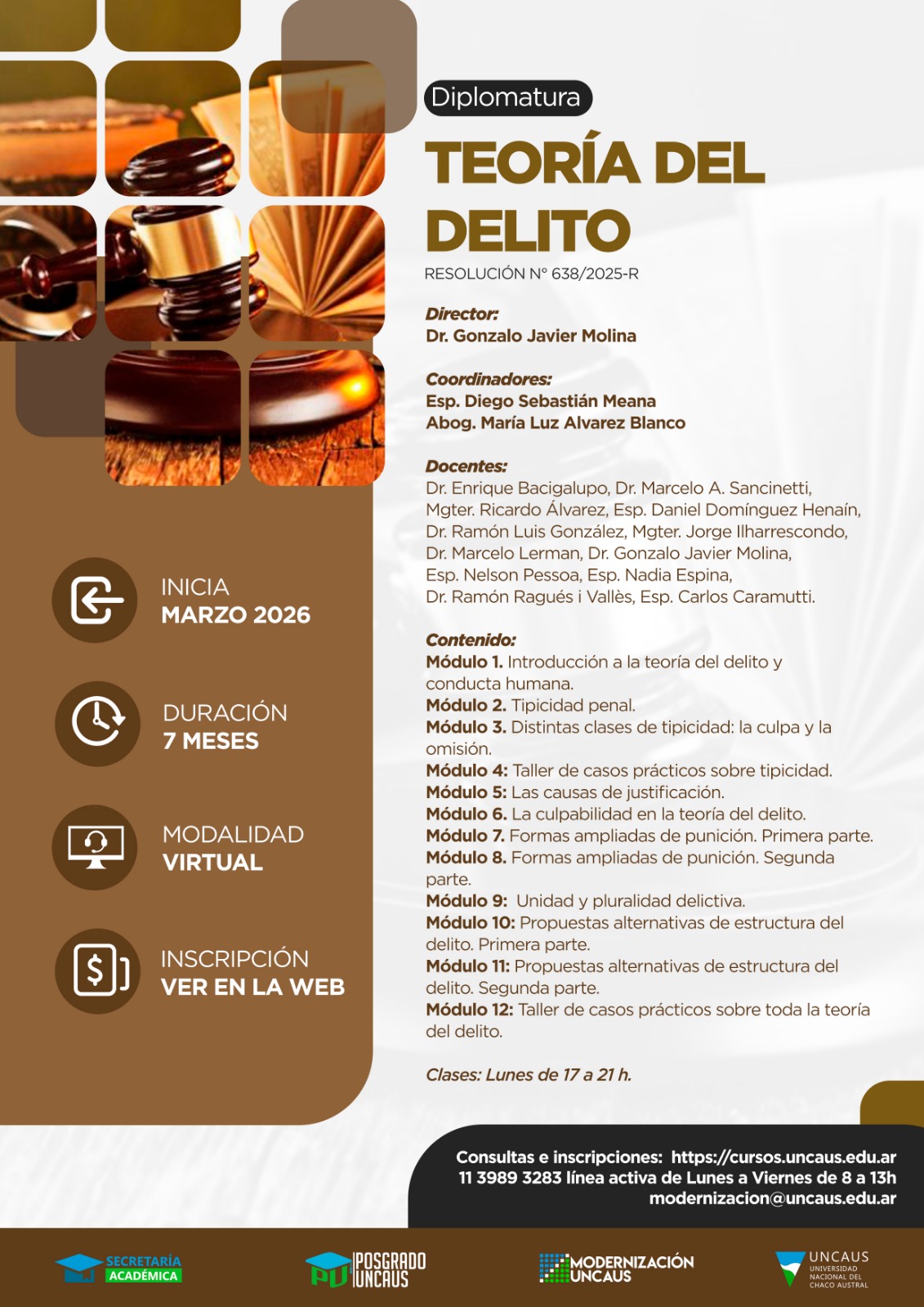 Destinado abogados. Se admitirán alumnos de abogacía en la medida en que hayan aprobado la materia Derecho Penal, Parte general, y de acuerdo a la disponibilidad de cupo.
