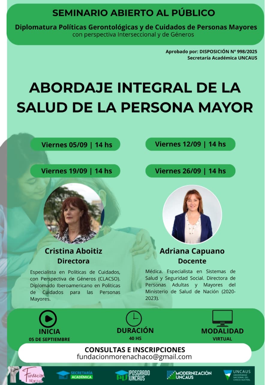 - Diplomatura Políticas Gerontológicas y de Cuidados de Personas Mayores con perspectiva interseccional y de Géneros.