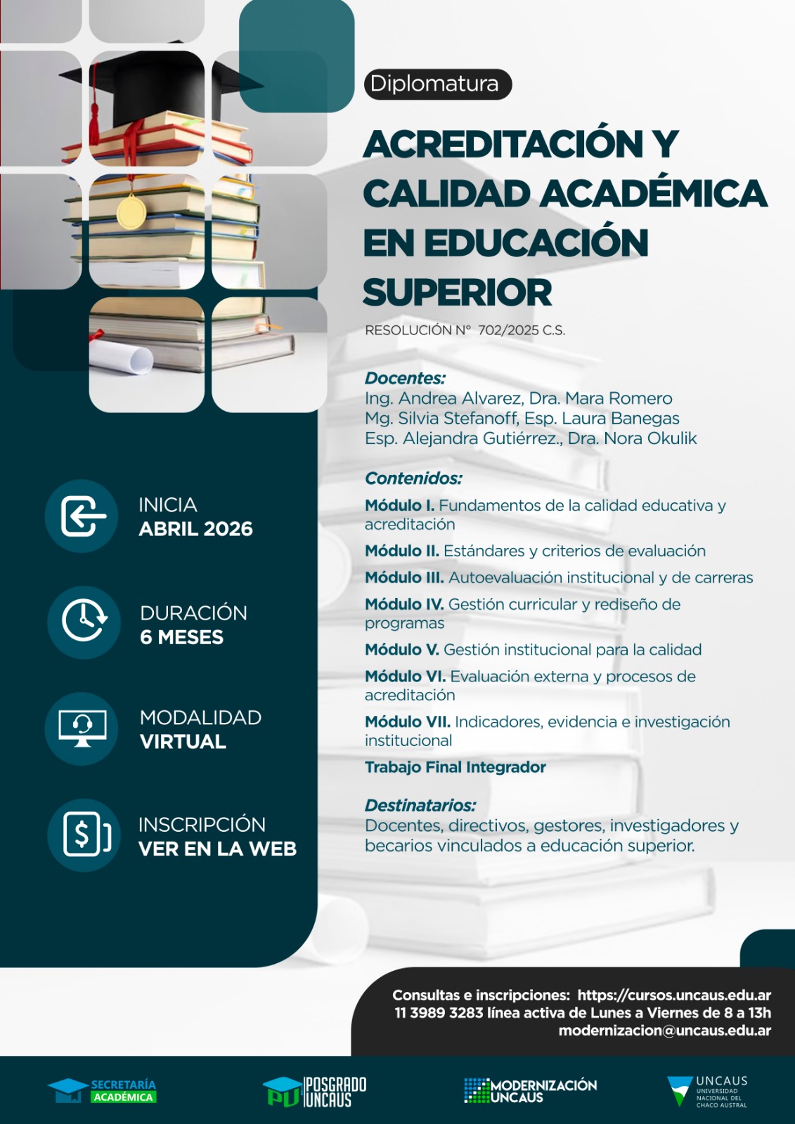 Se encuentra abierta la inscripción a la Diplomatura en Acreditación y Calidad Académica en Educación Superior, una propuesta de formación orientada a desarrollar competencias clave en evaluación, gestión institucional y mejora continua.